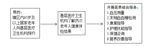 (一)为65岁及以上老年人提供医养结合服务。基层医疗卫生机构结合老年人健康体检结果,每年对辖区65岁及以上居家养老的老年人提供2次医养结合服务,并填写《老年人医养结合服务记录表》(见附件1)。