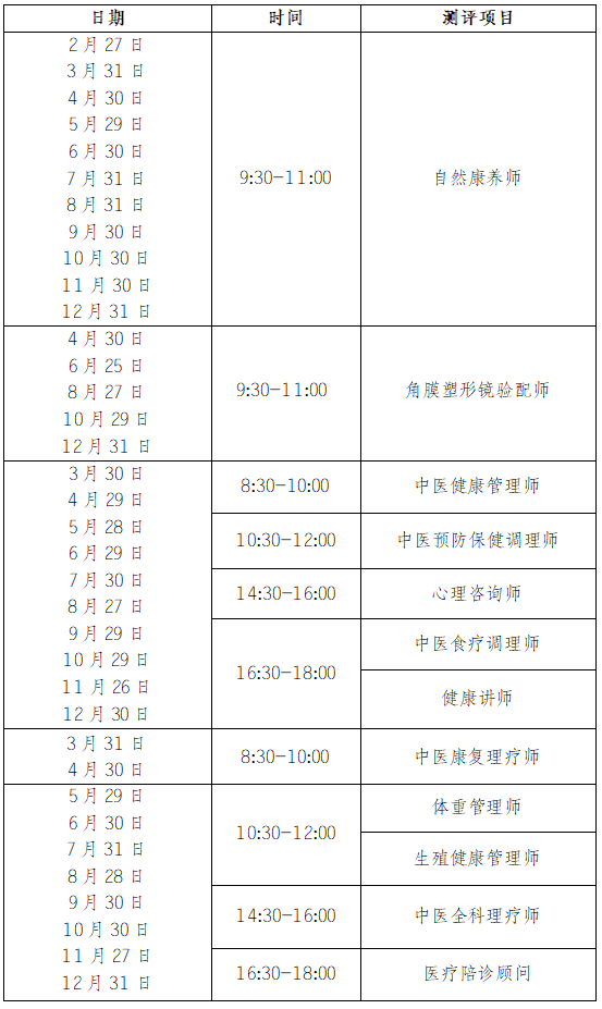 二、测评时间及项目
