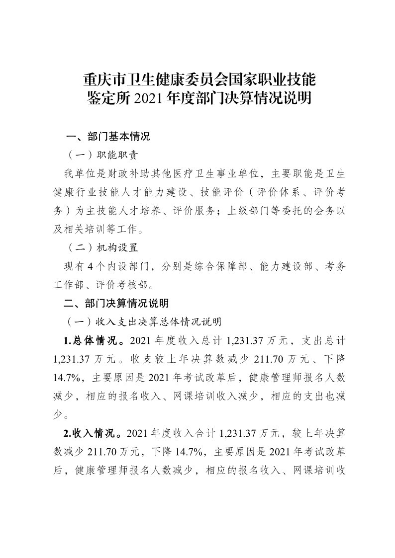 2021年度部门决算情况说明